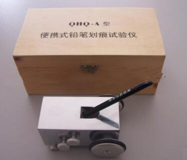 2、用刀片削鉛筆,使筆芯凸出部分約2~5㎜,垂直握住鉛筆,石墨朝下對(duì)著砂紙把石墨芯磨平且邊緣鋒利。再將鉛筆插入儀器,使筆芯與試驗(yàn)片接觸后并固定鎖緊,(建議:鉛筆為六邊形,固定時(shí)選擇一個(gè)平面,測(cè)試后,旋轉(zhuǎn)兩個(gè)平面再固定測(cè)試,再旋轉(zhuǎn)兩個(gè)平面固定測(cè)試,一個(gè)圓周面可使用三次)試驗(yàn)時(shí)要將墊片移開(kāi)